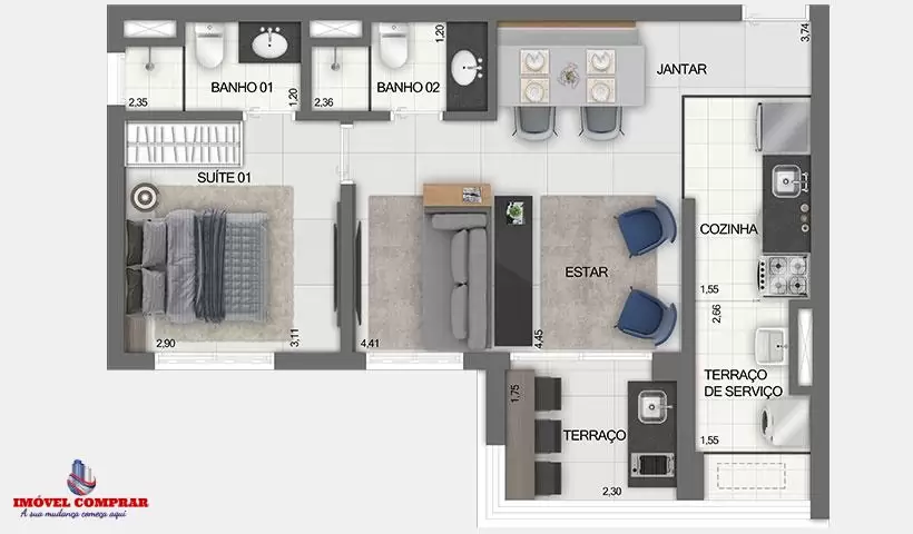 Área Útil: 29m²